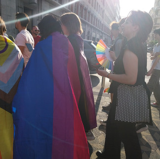 Dan kasneje sem se vrnila na Kongresni trg, v parku Zvezda sem sedela v senci dreves in z očmi prečesavala prizorišče, kjer se je še dan prej družila vesela večtisočglava množica. V glavi so mi odzvanjali tudi odmevi nasilja, ki so jih bile deležne nekatere LGBTIQ+ osebe, ko je v cerkvi na Slovenski cesti zazvonilo in na trgu se je zbrala nova zanimiva in veliko veliko manjša skupinica ljudi. Kakšnih ducat odraslih in nekaj otrok se je strumno postavilo v četico, roke sklenili v molitvi in začeli krožiti po Kongresnem trgu.