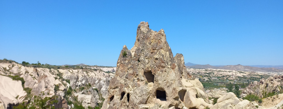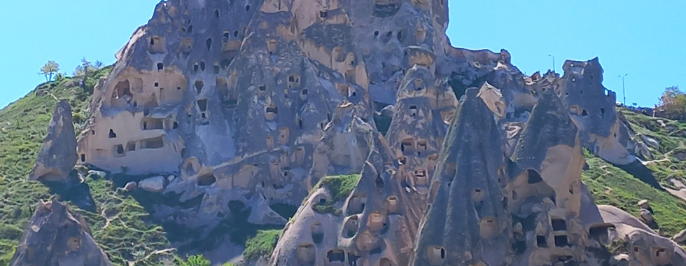 Cerkve, hiše, podzemna mesta … to pa niso edina čudesa jam v Kapadokiji. Še en se razteza vsem na očeh – prav poseben jamski grad, ki je s svojo pojavo popolnoma drugačen tistim, ki jih poznamo iz pripovedk o princih in princesah. V resnici izgleda bolj kot velika skalnata gomila, v kateri zevajo številne odprte luknje, na vrhu pa plapola turška zastava.